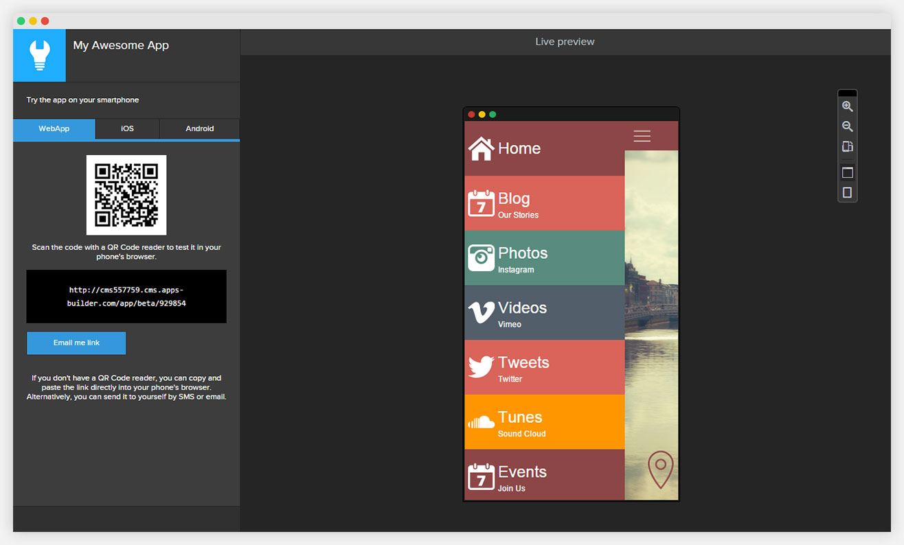 Test your app with the no-fuss AppsBuilder Preview App and once you’re ready, publish it in only a few clicks. Want a change? Modify your published app on the go or roll out new features and upgrades whenever you want.